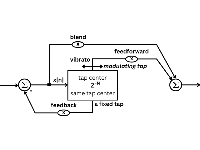 Ein Teil des verzögerten Signals wird direkt â also vor der Mischung mit dem Originalsignal â dem Ausgang zugefĂŒhrt. Dadurch entstehen gezielte PhasenĂŒberlagerungen, die bestimmte Frequenzen auslöschen oder verstĂ€rken. Im Unterschied zur RĂŒckkopplung wird das Signal hier nicht in den Kreislauf zurĂŒckgefĂŒhrt, sondern gezielt vorgeschaltet, um die Klangfarbe zu formen.