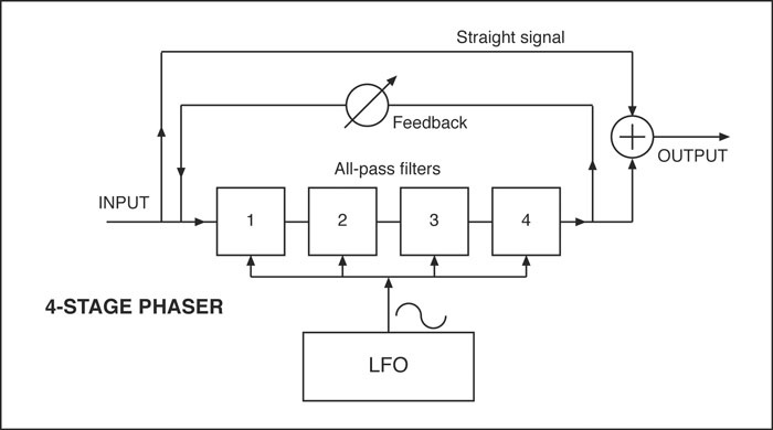 Beim Phaser ist die durch die Allpässe erzielte Verzögerung frequenzabhängig - dies im Gegensatz zu Flanger- und Chorus-Effekten, bei denen eine frequenzunabhängige Verzögerung (mittels Eimerketten- oder digitalen Verzögerungsleitungen). Die Maxima und Minima im erwähnten Kammfilter-Effekt bilden daher ein beim Phaser anderes Muster - zudem gibt es beim Phaser normalerweise weniger dieser Kammfilter-"Zacken". Es ergibt sich deswegen beim Phaser ein etwas anderes, typischerweise weniger "filigranes" Klangbild.