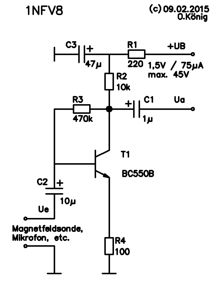 Abb. 5: Transistorbasierter Mikrofonvorverstärker mit unsymmetrischen Eingang: http://www.elektronikinstitut.de/1nfv8.html