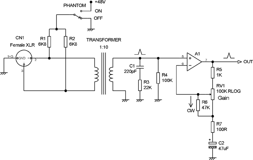 Die Desymmetrierung des Eingangssignals kann auf zwei Wege erfolgen. Entweder mithilfe eines Übertragers oder mit einer elektronischen Phasenumkehrstufe, wie z. B. bei Operations- oder Differenzverstärkern. Die Leitungsführung vom Mikrofon zum Mikrofonvorverstärker sollte symmetrisch erfolgen, um das Signal gegen Störeinflüsse zu schützen. Da das Gehäuse, in dem ein Mikrofonvorverstärker eingebaut ist, einen Großteil der Störeinflüsse abschirmt, ist innerhalb des Gerätes keine symmetrische Leitungsführung mehr nötig. Dies vereinfacht auch den Aufbau der Schaltung.