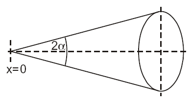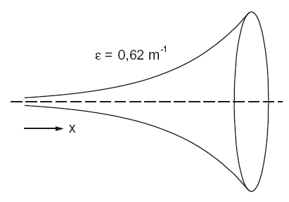 Accordingly, a spherical wave propagates in the funnel. If there is a sound source of volume rapid amplitude Q in the vicinity of x=0, it is not distributed over the entire solid angle 4π as with free propagation of a spherical wave, but only over the solid angle enclosed by the funnel \Omega = 2\pi (1 - \cos \alpha) \quad \text{with} \quad \alpha = \arctan\left(\sqrt{\frac{b}{\pi}}\right)