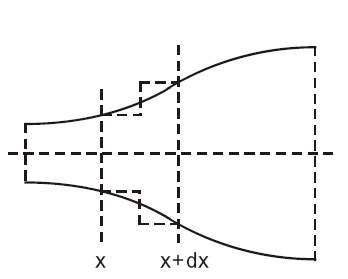 Imagine removing a very small segment of length dx from the pipe, so the cross-sectional change dS can be considered concentrated at a jump. Continuous Cross-Sectional Change