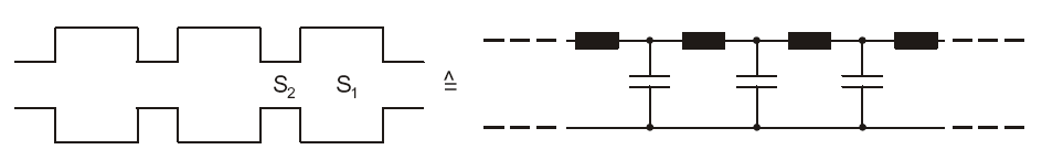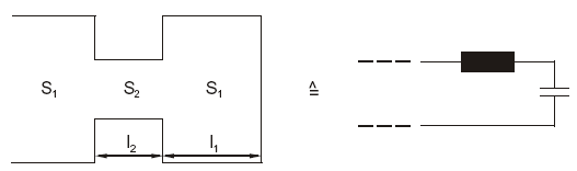 A succession of pipe expansions and constrictions results in an acoustic low-pass filter: Resonator series circuit Its cut-off frequency is