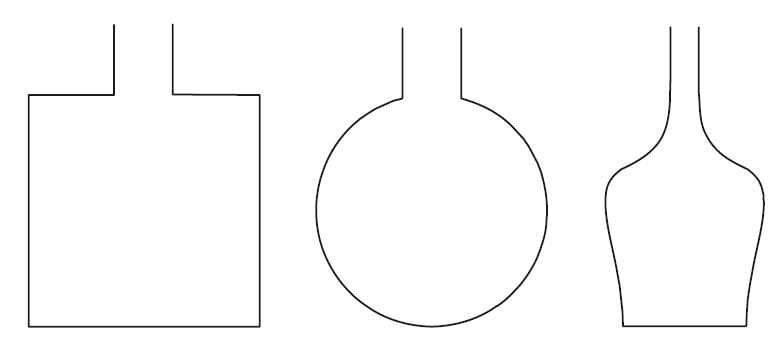 Additionally, the orifice correction must be applied to l_2 . V_1 is the volume of the closed part. Since all dimensions are small compared to the wavelength, its shape is not important. Resonator shapes