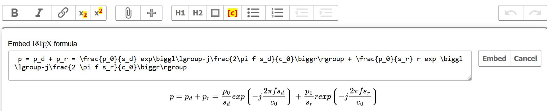 The paper clip [3], to upload files of various types, whereby images are displayed directly in the article, while PDF files are made available for download. Via the plus, videos, formulas according to LaTex language and interactive calculators can be embedded.